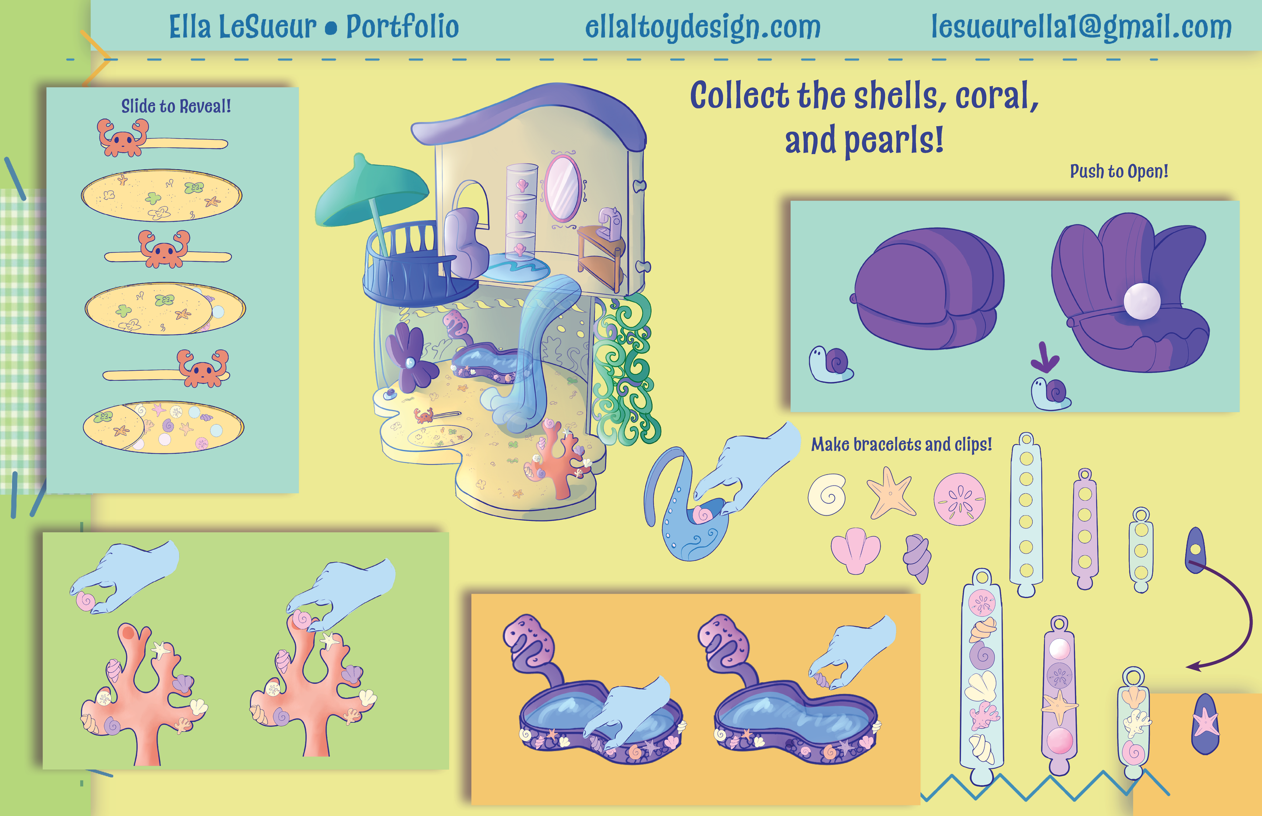 Aquatica is a project that incorporates fashion doll and pony play! I was inspired by Japanese gyaru fashion, seahorses, and thrifting! My goal for this project was to develop a doll line and a play set, and to create two 3D prototypes, as featured below.